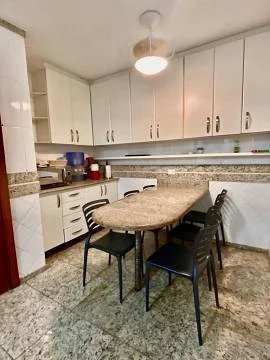 A cozinha é repleta de armários planejados, oferecendo bastante espaço de armazenamento, além de uma área de almoço aconchegante. A área de serviço é espaçosa e funcional, e a dependência de funcionários é uma verdadeira suíte, com um tamanho generoso.