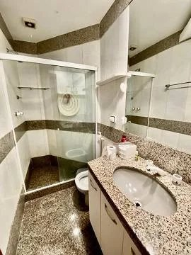 A suíte master é um verdadeiro refúgio, com armários planejados, uma ótima varanda que foi fechada com blindex e transformada em um escritório particular, além de um banheiro espaçoso com recente obra de renovação, onde a banheira de hidromassagem foi retirada. As outras duas suítes também possuem móveis planejados e amplos banheiros.