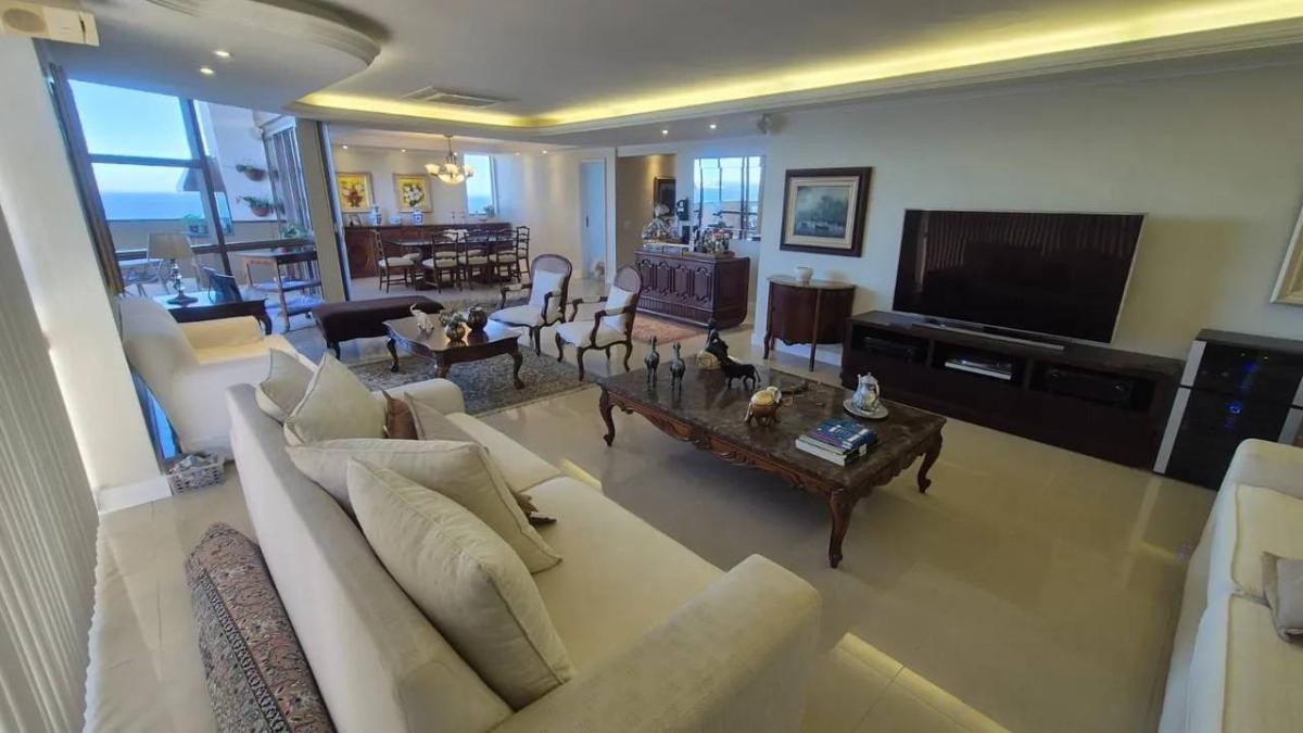 *Apartamento na Barra da Tijuca, FRONTAL AO MAR, 4 Quartos, 2 Suítes, 310 m². Posto 4. Av. Lúcio Costa.* Melhor Localização do Bairro.* ANDAR ALTO. Apartamento Totalmente Frente Mar. *Apartamento com todos os cômodos de frente para o mar*, *Sol da Manhã*, no Posto 4,o melhor lugar da praia, com 4 quartos sendo 2 suítes com closets, *Salão com 80m2*, copa/cozinha com 28m2, varanda com 25m2, escritorio/saleta, lavabo, adega, area de serviço e *Dependência completa de empregada*, *3 vagas de garagem(marcadas) fixas.* 04 Banheiros. Documentação Ok.