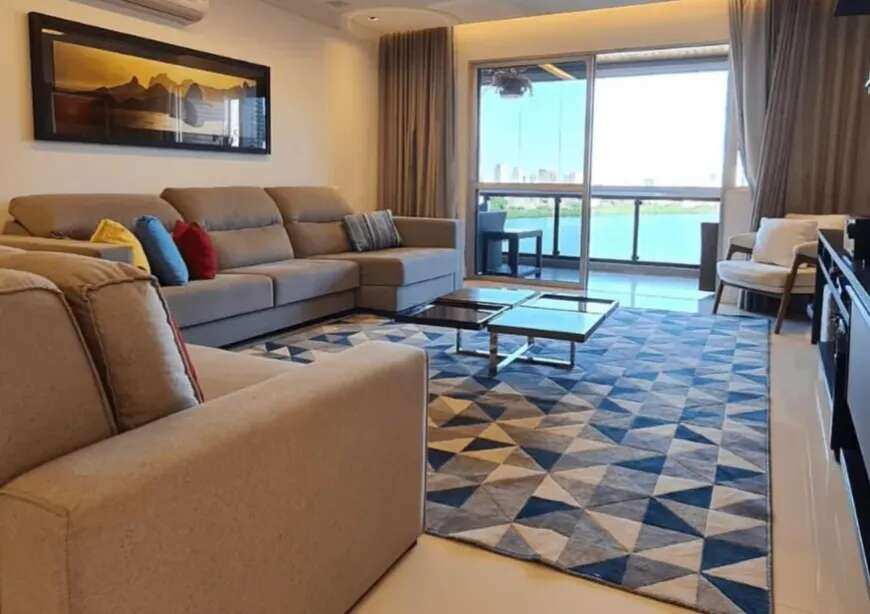 PRATICIDADE E CONFORTO: Além dos 4 quartos, a suíte com vista para a Lagoa oferece um refúgio privativo. Possui entrada de serviço apartada e duas dependências completas, garantindo total comodidade.