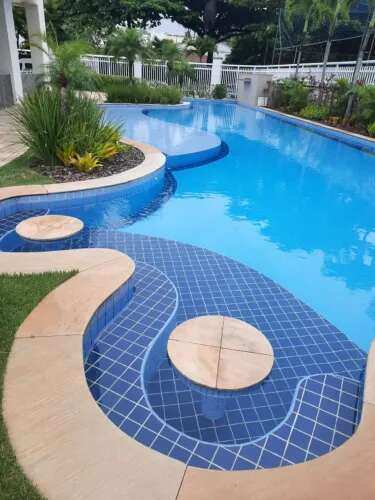 Piscina com raia de 25 m, prainha e mesas molhadas