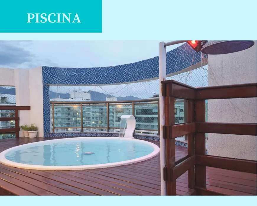 Aproveite a oportunidade de morar em uma cobertura de luxo no Recreio dos Bandeirantes, com 181 m², 3 quartos (1 suíte), 4 banheiros e 3 vagas de garagem. Localizada no 7º andar, esta cobertura oferece conforto, praticidade e armários embutidos em um ambiente moderno e aconchegante.