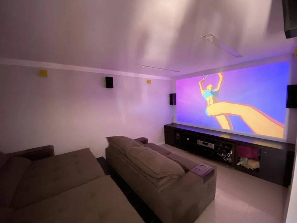 *1º pavimento:* Sala de estar e de jantar, varanda, escritório, lavabo, sala de cinema, cozinha e área de serviços, suíte master com closet e banheira, 2ª suíte com closet, 3º quarto com closet. Todos os quartos e home cinema já com ar condicionado split e cortinas roll blackout.