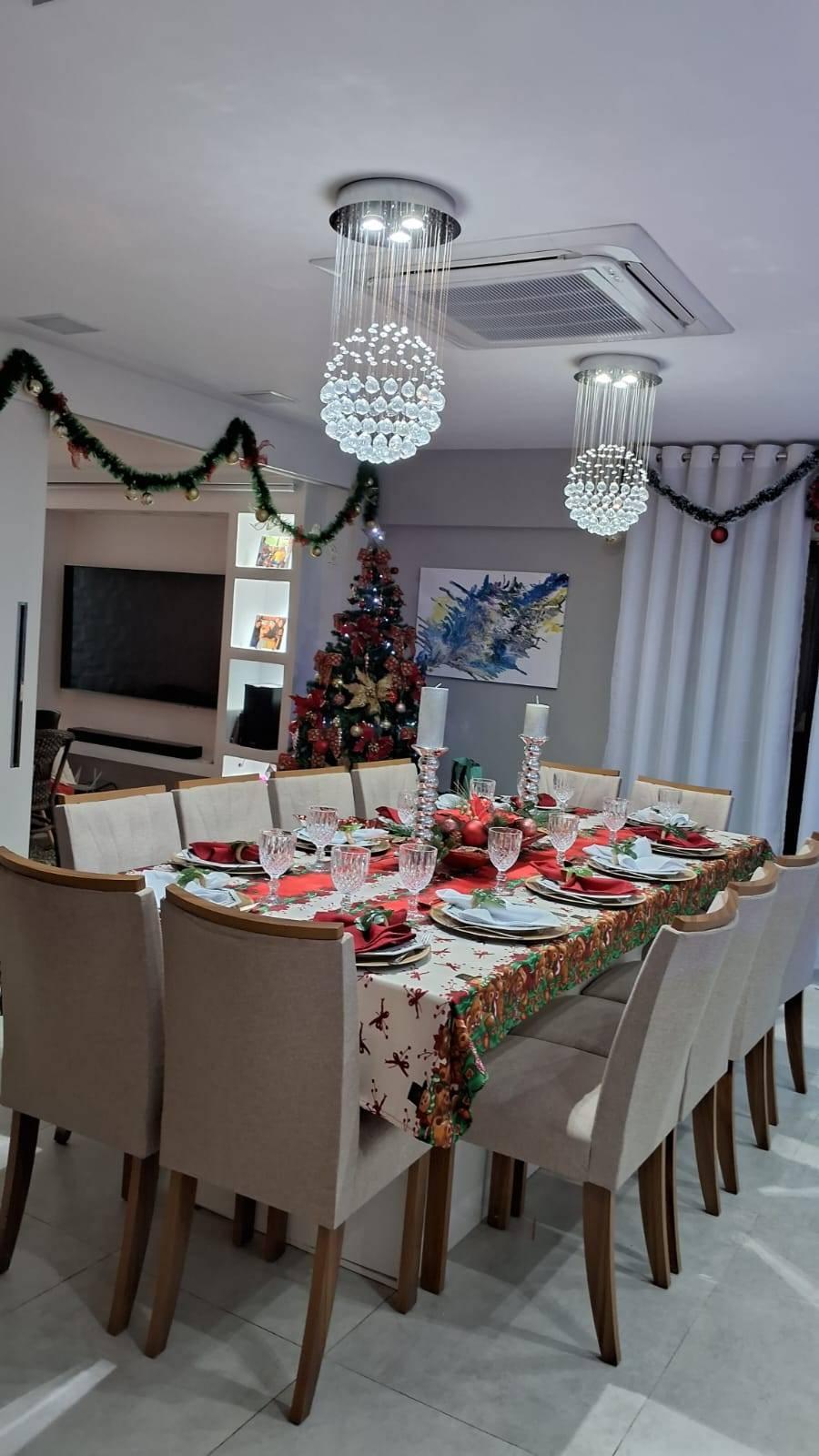 MESA JANTAR GIGANTE TAMPO DE VIDRO COM 12 CADEIRAS